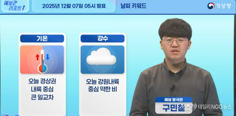 【 기상.날씨 】 안녕하세요, 기상청 예보관리포트 예보분석관 구민철입니다. 오늘의 날씨 키워드는 기온과 강수 그리고 풍랑입니다. 그럼 자세히 알아보겠습니다.
