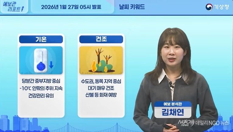 [데일리NGO뉴스 = 기상청. 날씨/ 강추위.건조 ]