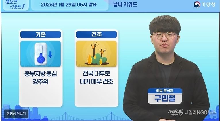 【 기상청.날씨=동영상/추위.바람.건조 】 2026년 1월 29일 05시 예보를 해설한 예보관리포트입니다. 지역별 더 자세한 날씨는 기상청 날씨누리와 기상청 날씨알리미앱을 참고하시기 바랍니다.