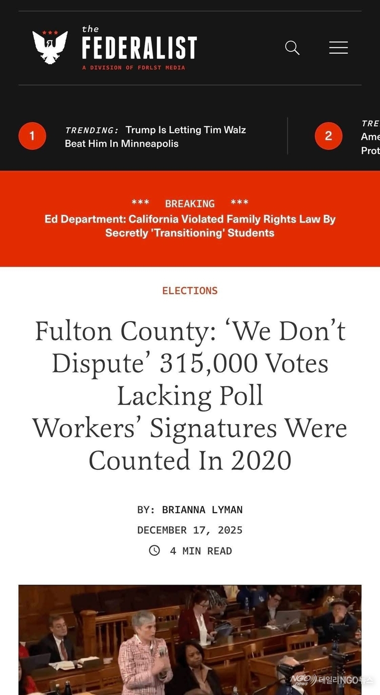 [데일리NGO뉴스 = 국제. 美 FBI / 풀턴 카운티 선관위 압수수색 ]