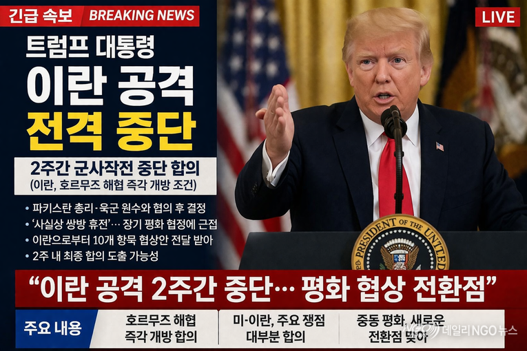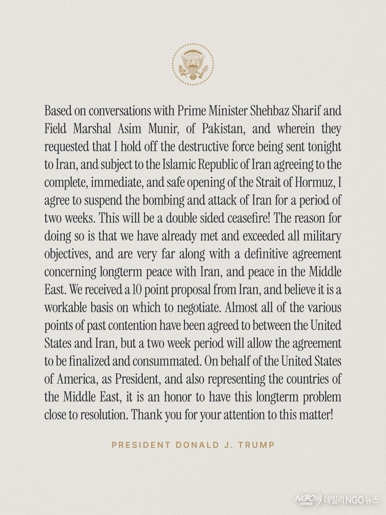 [데일리NGO뉴스= 시사토픽Q / 美,이란 전쟁 2주 휴전 발표 ]