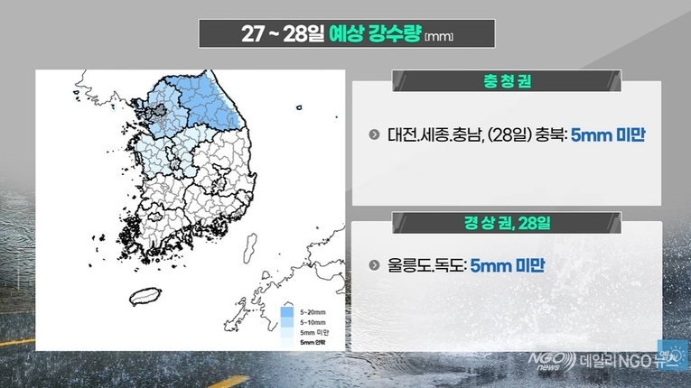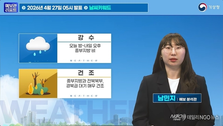 [데일리NGO뉴스 = 동영상.날씨= 비. 건조. 기온차 ]