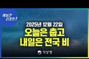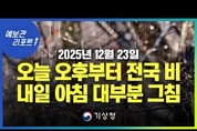 [데일리NGO뉴스 = 동영상/ 기온.날씨 ] 【 기온.날씨/ 비.추위 】안녕하세요 예보관리포트 기상청 예보분석관 남민지입니다 이번 영상의 날씨 키워드는 ‘강수’와 ‘기온’입니다. 그럼 자세히 살펴보겠습니다 현재 위성 영상을 보시면 기압골 전면에서 구름대가 다가오면서 서쪽 지역을 중심으로 구름많은 날씨가 나타나고 있습니다. 이 기압골의 영향으로 오늘 오전부터 비가 내리겠는데요 북서쪽부터 비가 시작되어 밤에 전국으로 확대되겠고 내일 24일 아침에 대부분 그치겠으나 제주도는 늦은 오후까지 이어지겠습니다. 기온이 낮은 강원중북부와 경기북동부에는 눈으로 내려 쌓이는 곳도 있겠습니다 내일까지 예상 강수량과 적설은 다음 그림에서 보시겠습니다. 기압골이 지나가고 대륙고기압이 다시 확장하면서 25일 차가운 북서풍이 유입되는데요 이 모식도처럼 차가운 공기가 상대적으로 따뜻한 서해상을 지나면서 만들어진 구름대가 유입되어 25일 오후부터 26일 오후 사이 전북서부와 전남서해안 제주도에 비 또는 눈이 내리는 곳이 있겠습니다 25일 예상 강수량과 적설은 다음 그림에서 보시겠습니다 비 또는 눈이 내리고 밤사이 기온이 내려가면서 보행로나 도로가 얼어 미끄러운 곳이 있겠으니 안전사고에 유