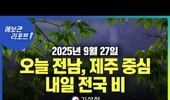 오늘 전남권과 제주도 중심, 내일 전국 대부분 지역에 비. ( 25년 9월 27일 5시 기준)