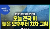 오늘 전국 비, 늦은 오후에 북서쪽부터 그치기 시작 (25년 9월 28일 5시 기준)