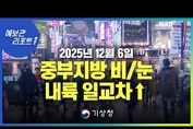 【 동영상/ 기상.날씨 】 중부지방 비 또는 눈, 내륙 일교차 높아 (25년 12월 06일 05시 기준)