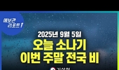오늘 전국 비, 늦은 오후에 북서쪽부터 그치기 시작 (25년 9월 28일 5시 기준)