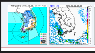 [동영상.날씨] 전라권 중심 많은 눈, 내일 중부지방.제주도 비.눈, 기온 낮아 추워 (26년 1월 11일 05시 기준)