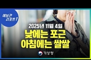[데일리NGO뉴스 = 동영상.사회일반/ 기상.날씨] 【 기상.날씨 】 안녕하세요, 기상청 예보관리포트 예보분석관 구민철입니다. 오늘의 날씨 키워드는 안개와 기온입니다. 그럼 자세히 알아보겠습니다. 먼저, 아침 기상 실황입니다. 현재 우리나라는 지상에서는 중국 북부지방에서 서해상으로 확장하는 고기압의 영향을 받고 있으며, 상층으로는 기압골 후면으로 차고 건조한 공기가 남하하면서 일부 남부지방을 제외한 전국이 대체로 맑은 날씨를 보이고 있는데요. 밤사이 맑은 날씨가 나타나면서 복사냉각이 일어나 기온이 크게 떨어져 안개가 발생하였습니다. 가시거리 분포도를 보면, 서쪽 지역을 중심으로 가시거리 200m 미만의 짙은 안개가 낀 곳이 있으며, 그 밖의 지역에도 가시거리 1km 미만의 안개가 낀 곳이 있습니다. 이 안개는 오전까지 지속될 것으로 예상되며 기온이 낮은 지역에서는 도로 살얼음이 나타나는 곳도 있겠으니, 출근길 차량 운행 시 감속 운행하시고, 수험장으로 이동하는 수험생들은 교통안전에 각별히 유의하시기 바랍니다. 다음은 기온 전망에 대해 알아보겠습니다. 밤사이 복사냉각에 의해 기온이 떨어져 아침 기온이 내륙을 중심으로 5℃ 안팎으로 나타나 평년과 비슷하거나 조금