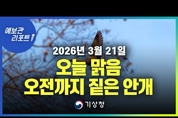 [데일리NGO뉴스 = 기상청.날씨/ 맑음. 기온차.안개 ] ◆ 현재 고기압권 영향 하에 맑은 날씨로 오늘은 계속해서 전국이 대체로 맑아 ◆ 오늘 낮과 밤 기온차 15~20℃로 급격한 기온 변화로 인한 건강관리에 유의 ◆ 어제 서해상에 위치했던 고기압 가장자리로 우리나라 서쪽 지역 중심 안개 【 동영상.날씨= 맑음. 기온차.안개 】 안녕하세요 예보관 리포트 기상청 예보분석관 김환빈입니다 현재 안개가 낀 곳이 많습니다 따라서 교통안전에 각별한 유의가 필요하겠습니다. 이번 영상에서는 오늘 날씨와 안개에 대해 살펴보겠습니다 먼저 오늘 날씨입니다. 현재 우리나라는 고기압권의 영향 하에 맑은 날씨를 보이고 있습니다. 이 고기압의 영향으로 오늘은 계속해서 전국이 대체로 맑겠습니다 다만 구름이 이불과 같은 역할을 하기 때문에 구름이 없으면 마치 이불을 덮지 않은 것처럼 밤에는 지구의 열이 쉽게 방출되어 기온이 크게 떨어질 수 있습니다 반면 낮에는 햇빛이 구름의 방해를 받지 않고 바로 유입되기 때문에 기온이 더욱 오를 수 있어 오늘은 낮과 밤의 기온차가 15~20℃로 크겠습니다 급격한 기온 변화로 인한 건강관리에 유의하시기 바랍니다 다음은 안개입니다 먼저 안개란 무엇인지 간