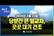 [데일리NGO뉴스 = 동영상.날씨 / 맑다 흐림. 건조.일교차 ] ◆ 오늘 전국 대체로 맑겠고 내일 전국 대체로 맑다가 오전부터 대체로 흐린 날씨 ◆ 제주도는 흐리고 내일 늦은 밤부터 모레 오전 사이 5~10mm의 비가 내리겠다 ◆ 오늘 낮 기온 서울과 대전 19도 광주 21도 대구 20도 부산 19도까지 오르겠다 ◆ 내일 아침 기온 대부분 5도 안팎 강원도. 경북 중심 영하권 떨어져 낮 15도 이상 ◆ 서울 포함한 수도권. 강원동해안 충북 경북권 제주도산지 중심건조특보 발효 중 【 동영상.날씨= 맑다 흐림. 건조.일교차 】안녕하세요 예보관 리포트 기상청 예보분석관 김채연입니다. 이번 영상의 중점사항은 ‘내륙 지역 중심 큰 일교차’ 그리고 일부 중부지방과 경북권 중심 대기 건조’입니다 그럼 자세히 알아보겠습니다 오늘 우리나라는 중국 북부지방에서 서해상으로 이동하는 고기압의 영향으로 전국이 대체로 맑겠습니다. 내일은 동해상에서 동쪽으로 이동하는 고기압의 영향을 받아 전국이 대체로 맑다가 고기압의 가장자리에 드는 오전부터 대체로 흐린 날씨를 보이겠습니다 한편 제주도남쪽해상을 지나가는 저기압의 영향으로 제주도는 흐리고 내일 늦은 밤부터 모레 오전 사이 5~10mm