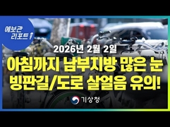 [데일리NGO뉴스 = 기상청.날씨/ 전라.경상 대설특보] ◆ 충청권과 강원중.남부 내륙.산지 전라권과 경상내륙에 대설특보 발효 ◆ 중부지방 눈 대부분 종료... 남부지방은 아침까지 제주도 오후까지건조 ◆ 내일 아침 기온 중부.전북동부.경상내륙 중심 영하 10도, 전국 영하 5도 【 기상.날씨/ 전라.경상 대설. 】안녕하세요 예보관리포트 기상청 예보분석관 남민지입니다 .이번 영상의 날씨 키워드는 ‘강수’과 ‘건조’입니다 그럼 자세히 살펴보겠습니다 밤사이 저기압의 영향으로 중부지방을 중심으로 눈이 내렸는데요 저기압에 동반된 눈구름대가 남하하면서 현재는 충청권과 강원중 남부내륙 산지 전라권과 경상내륙에 대설특보가 발효되어있고 시간당 1~3cm 일부 지역은 5cm 이상의 많은 눈이 내리는 곳이 있습니다. 오늘 아침에 중부지방의 눈은 대부분 종료되겠으나 남부지방은 아침까지 제주도는 오늘 오후까지 이어지겠습니다. 한편 일부 강원도와 충청이남 지역에는 아침까지 시간당 1에서 3cm 일부 지역은 5cm 안팎의 강하고 많은 눈이 내리는 곳이 있겠으니 유의하시기 바랍니다 오늘까지 예상 적설과 강수량은 다음 그림에서 보시겠습니다 또한 아침 기온이 영하권으로 낮은 가운데 내린 눈이 얼면서 도로가 미끄러운 곳이 많겠고 빙판길과 도로 살얼음이 나타나는 곳이 많겠으니 출근길 교통안전과 보행자 안전에 각별히 유의하시기 바랍니다 밤사이 비 또는 눈이 내리면서 수도권과 충청권 일부 강원도에 발효되었던 건조특보는 해제되거나 경보는 주의보로 완화되었는데요 강수량이 적은 강원동해안과 경상권의 건조특보는 유지되겠으니 앞으로 발표되는 최신 기상정보를 참고하시기 바랍니다 바람도 강하게 불면서 작은 불씨가 큰불로 번질 수 있겠으니 산불과 각종 화재 예방에 각별히 유의하시기 바랍니다 기온 전망입니다 이번 주 초반은 중국에서 동쪽으로 이동하는 고기압의 가장자리에서 유입되는 상대적으로 온난한 서풍계열의 바람의 영향으로 평년보다 높은 기온을 보이겠으나 내일 아침 기온은 중부내륙과 전북동부 경상내륙을 중심으로 영하 10도 안팎으로 낮겠고 그 밖의 전국은 영하 5도 안팎이 되겠으니 낮은 기온에 대비하여 건강관리에 유의하시기 바랍니다 지금까지 기상청 예보관리포트였습니다. 【 기상청 예보분석관 남민지 】 seo@dailyngonews.com