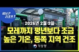 [데일리NGO뉴스= 기상청.날씨/ 추위.건조 ] ◆ 전국 대부분 지역 눈 내린 가운데 현재 전국 대부분 영하권 빙판길. 도로 살얼음 주의 ◆ 아침 기온 영하권, 낮 기온 점차 올라 영상권 보이며 모레까지 평년보다 조금 높겠다. ◆ 낮에는 강과 하천 등의 얼음이 녹아 얇아져 깨질 우려 있으니 안전사고에 유의 바람 ◆ 평년기온 넘는 추세 오래 지속되지 않겠고 금요일부터는 다시 기온 하강 가능성 유의 【 동영상.날씨=추위. 건조】 안녕하세요 예보관 리포트 기상청 예보분석관 김환빈입니다. 어제 전국 대부분 지역에 눈이 내린 가운데 현재 전국 대부분 영하권을 보이고 있어 빙판길과 도로 살얼음이 나타나는 곳이 많겠습니다. 또한 당분간 동쪽 지역 중심으로는 대기가 매우 건조하겠습니다. 그럼 기온과 건조에 대해 자세히 알아보겠습니다 먼저 기온 전망입니다 기온은 일반적으로 기압계에 따라 달라집니다. 이는 바람의 방향이 기압계와 관련이 있기 때문입니다. 수증기와 열을 운반하는 바람은 일반적으로 고위도의 북풍계열의 바람이 불면 추워지고 저위도의 남풍계열이 불면 따뜻해집니다. 현재 우리나라의 기압계는 중국 상하이쪽에 고기압이 위치하고 있어 맑은 것을 보실 수 있는데요. 이 고기압