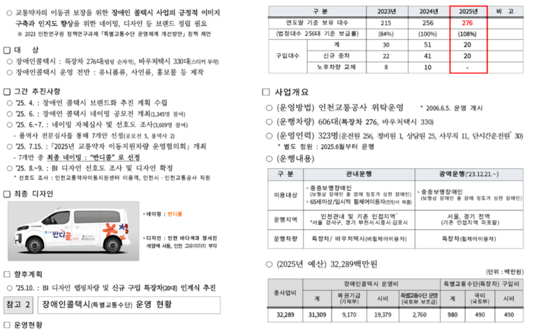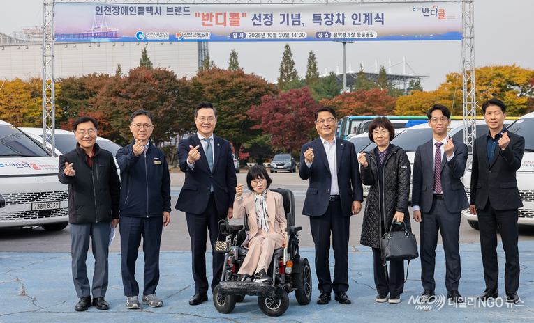 인천광역시(시장 유정복)가 10월 30일 문학경기장 동문광장에서 '2025년 장애인 콜택시 브랜드“반디콜”선정기념 및 특장차 인계식'을 개최했다.