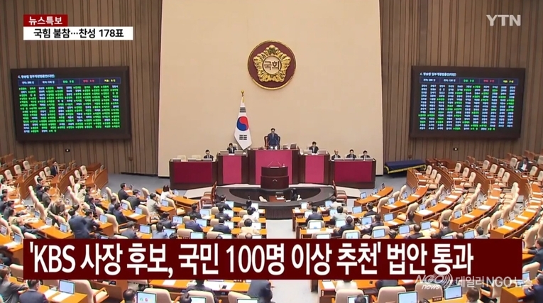 국회 KBS사장 법안 의결하는 우원식 국회 의장 (사진 = YTN 방송 캡쳐 )