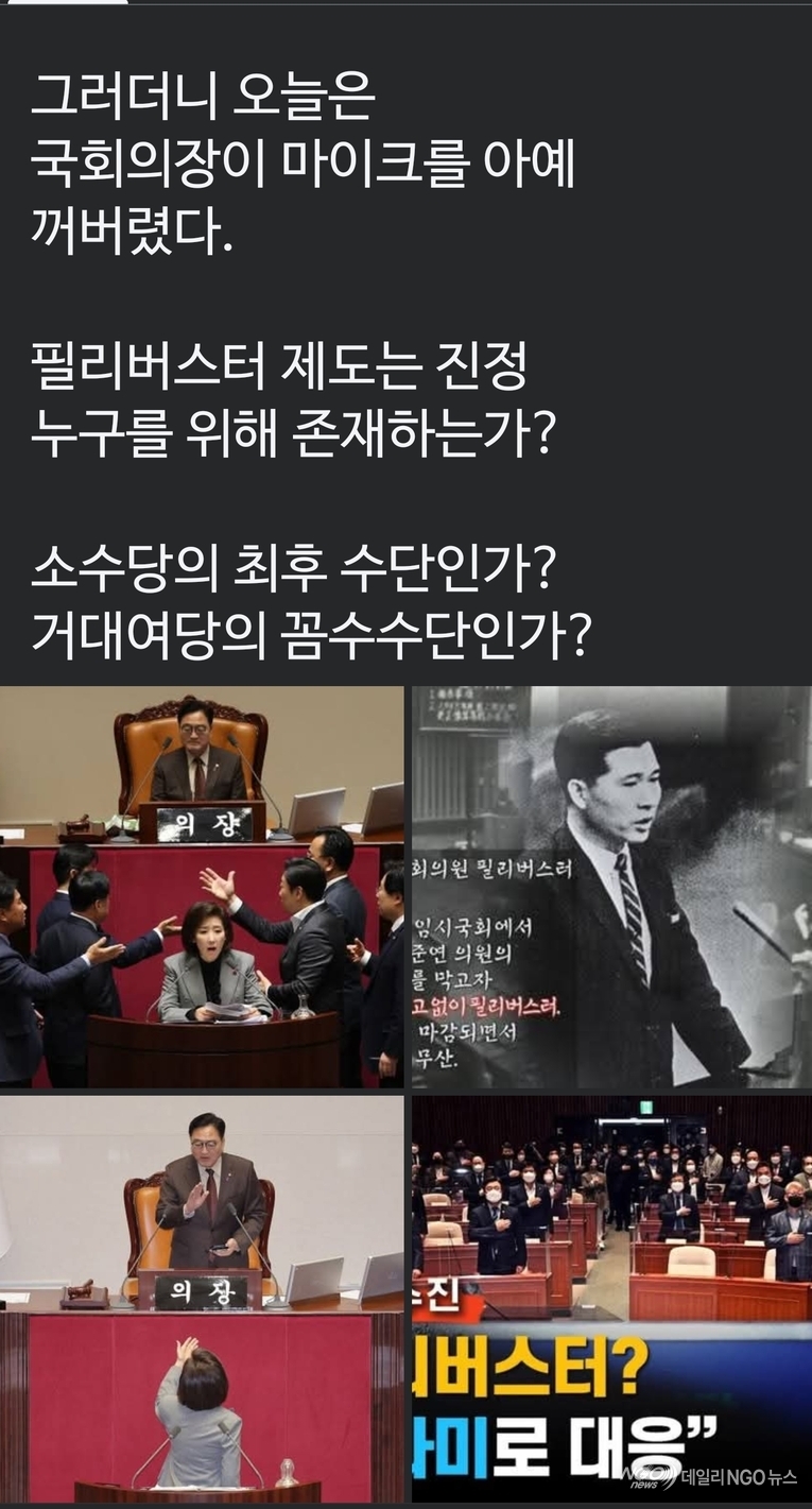 [데일리NGO뉴스 = 국회.정당/ 필리버스터 중단]