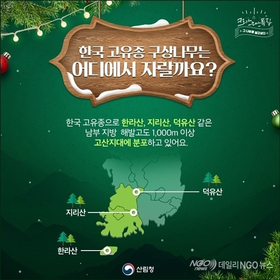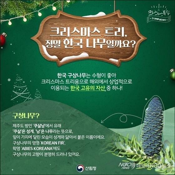 크리스마스의 행복을 전해온 구상나무의 이야기가 앞으로도 이어질 수 있도록 그 가치와 소중함을 함께 기억해 주세요! [ 산림청 ]