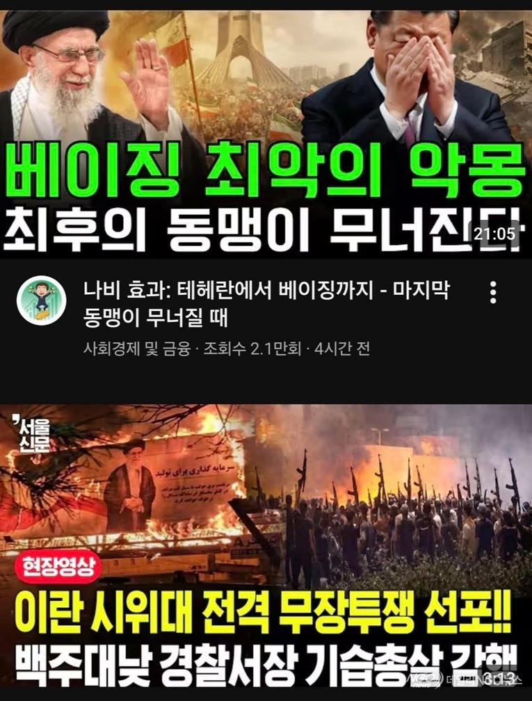 ◆ '자국민 무차별 총격 살해하는 하메네이 정권 전세계 분노 상태 ... 트럼프 美 대통령 직접 개입 천명'