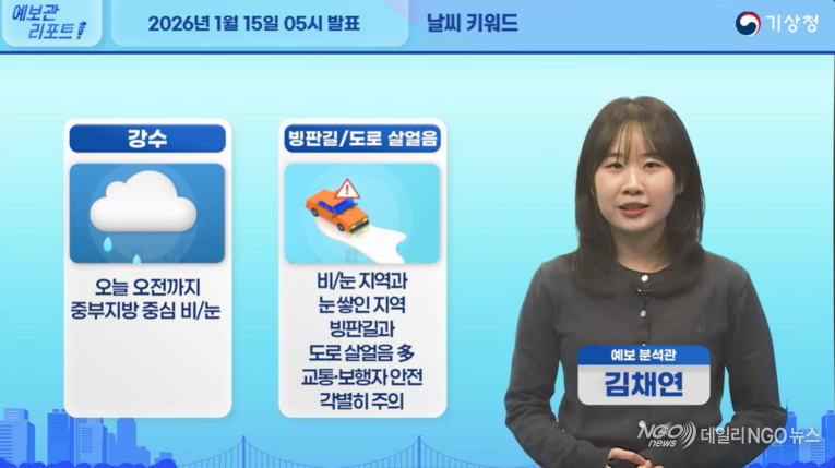 【 동영상.날씨=기상청/비.눈.건조 】 안녕하세요 예보관 리포트 기상청 예보분석관 김채연입니다. 이번 영상의 중점 사항은 오늘 중부지방을 중심으로 내리는 비 또는 눈과 그로 인한 빙판길과 도로 살얼음에 대한 각별한 유의입니다 그럼 자세히 알아보겠습니다
