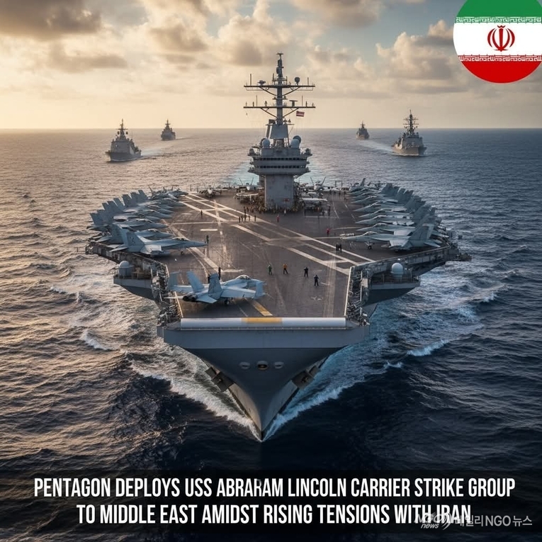 [ 중동= 홍해 美.이스라엘 해군력 집결] 美 펜타곤은 USS 에이브러햄 링컨 모함 스트라이크 그룹에 이란과의 긴장이 고조됨에 따라 중동으로 재배치하라고 명령했다.