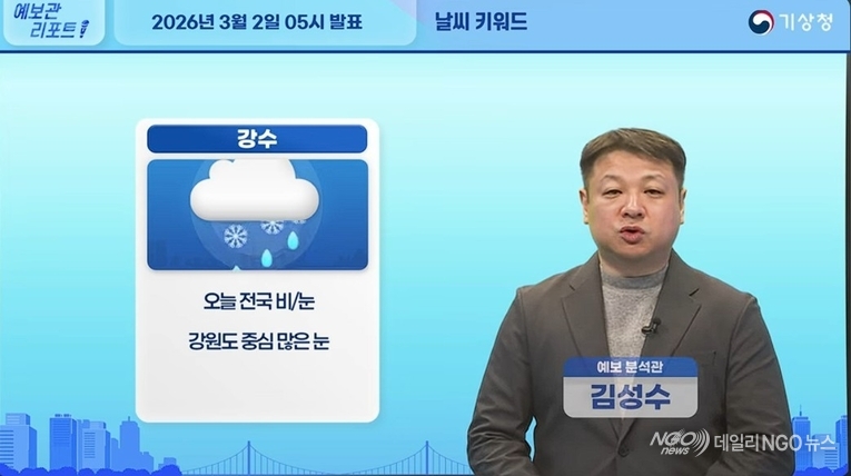 [데일리NGO뉴스 = 동영상.날씨/ 비.눈. 강풍 ]