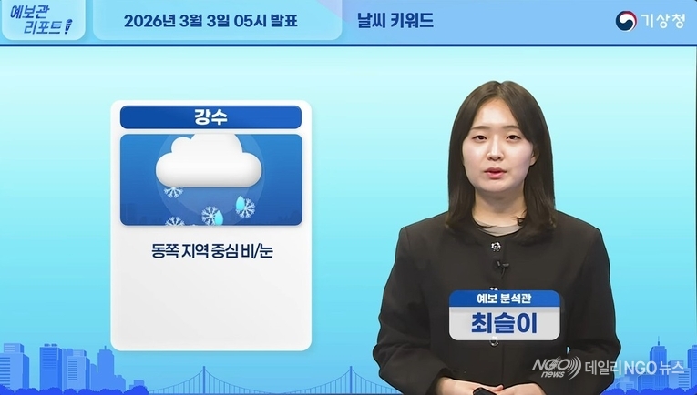 [데일리NGO뉴스= 기상.날씨/ 동편 강수. 강풍]