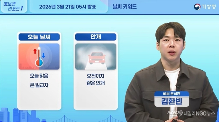 [데일리NGO뉴스 = 기상청.날씨/ 맑음. 기온차.안개 ]