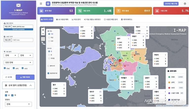 이미 가동 중인‘인천 응급맵(I-MAP)’도 한 단계 끌어올린다. 2025년 12월 전국 최초로 도입된 이 시스템은 응급환자 이송 지연이나 수용 곤란 사례를 유형별로 분류하고, 이를 바탕으로 환자 이송 흐름을 시각화하는 기능을 갖추고 있다.