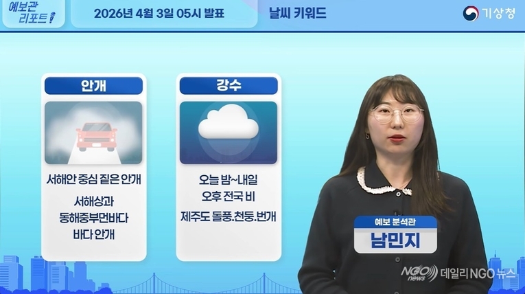 [ 데일리NGO뉴스 = 동영상. 날씨/ 안개. 비. 돌풍 ]