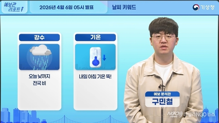 【 동영상.날씨= 비. 천둥번개. 우박 】 안녕하세요, 기상청 예보관리포트 예보분석관 구민철입니다. 오늘의 날씨 키워드는 강수와 기온입니다. 그럼 자세히 알아보겠습니다