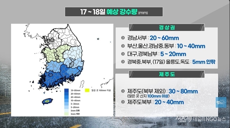 [데일리NGO뉴스 = 동영상.날씨/ 비. 기온차. 건조 제주 호우 ]