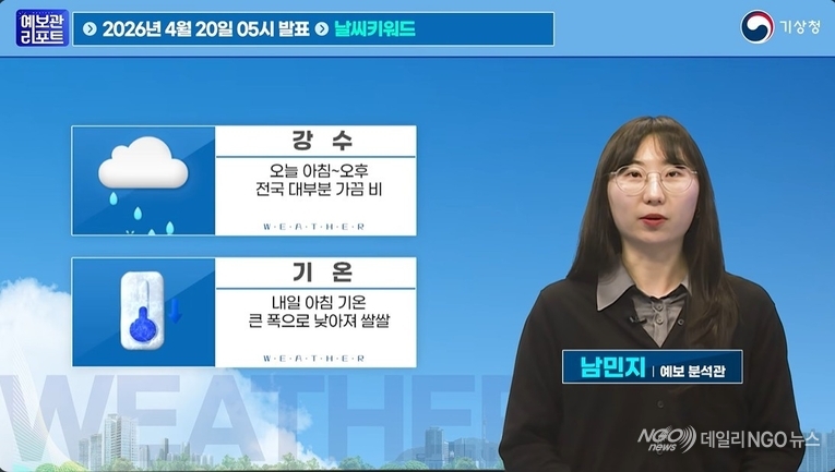 [데일리NGO뉴스 = 동영상.날씨/ 비. 기온차. 찬공기 ]