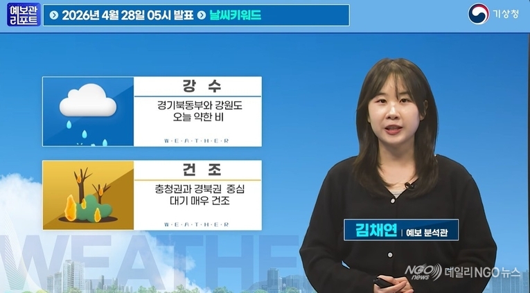 [데일리NGO뉴스= 동영상.날씨/ 약한 비. 건조. 기온차 ]