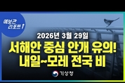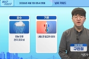 [데일리NGO뉴스 = 동영상.날씨/ 안개.비.바람.일교차 ] ◆ 오늘 전국 가끔 구름많고 전남. 제주도는 흐린 날씨... 중부내륙 남부지방 중심 낮기온 20℃ 안팎 ◆ 서해안 안개 오늘 오전까지 서해상과 동해중부 해상 바다 안개는 내일까지 이어져 교통안전 유의 ◆ 내일 오전 전라.제주에 비 시작 오후부터 전국 확대 모레 새벽까지 강원영동.충북, 경북 오후까지 ◆ 고도 높아 기온 낮은 강원 높은 산지 비가 눈으로...대기 건조특보 발효 바람 불면서 산불.화재 유의 【 동영상.날씨= 안개.비.바람.일교차 】안녕하세요 예보관 리포트 기상청 예보분석관 최슬이입니다.오늘의 날씨 키워드는 안개와 강수입니다. 그럼 자세히 살펴보겠습니다 기압계를 통해 오늘 날씨 전망 알아보겠습니다. 우리나라에 영향을 주었던 고기압은 점차 동쪽으로 이동하고 중상층에서 구름이 유입되고 있는데요. 오늘 전국이 가끔 구름많겠지만 전남권과 제주도는 흐린 날씨를 보이겠습니다 또한, 고기압 가장자리를 따라 온난이류가 유입되면서 오늘 중부내륙과 남부지방을 중심으로 낮기온이 20℃ 안팎으로 오르겠는데요 일교차가 크겠으니 건강관리 유의하시기 바랍니다. 차가운 바다 위를 따뜻한 공기가 지나면서 서해상과 동해