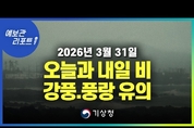 [데일리NGO뉴스= 동영상.날씨/ 비.강풍.풍랑 ] ◆ 오늘 오전까지 비가 대부분 그치겠으나 강원동해안.산지와 경북동해안은 오후까지 이어지는 곳 있겠다 ◆ 내일 제주도 늦은 새벽부터 오후 사이 비 내리고 오후부터 밤사이 강원,충북, 전라동부, 경상권에비 내려 ◆ 강풍특보 발표된 부산.울산과, 경북동해안, 제주 남부 제주도는 오늘 오후까지 바람이 매우 강하게 불어 ◆ 서해중부해상과 전라앞바다, 동해중부앞바다 제외한 대부분 해상에 물결 매우 높게 일며 풍랑특보 발효 【 동영상.날씨= 비.강풍.풍랑 】안녕하세요 예보관리포트 기상청 예보분석관 곽대영입니다. 오늘의 날씨 키워드는 강수와 강풍.풍랑입니다. 그럼 자세히 알아보겠습니다. 먼저 기상 실황입니다 우리나라는 밤사이 중국 상하이 부근에서 동쪽으로 이동하는 저기압의 영향을 받아 전국적으로 비가 내렸는데요 이 저기압이 점차 동해상으로 빠져나가면서 오늘 오전까지 비가 대부분 그치겠으나 강원동해안.산지와 경북동해안은 오후까지 이어지는 곳이 있겠습니다. 그림을 통해 오늘 오후까지 내리는 비의 강수량을 살펴보겠습니다 한편 내일 제주도는 제주도남쪽해상을 지나는 기압골의 영향으로 늦은 새벽부터 오후 사이 비가 내리겠고 서해상에