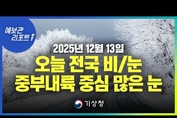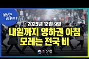 [데일리NGO뉴스= 동영상/ 기상.날씨 ] 【 기상.날씨 】 안녕하세요, 예보관 리포트 기상청 예보분석관 김환빈입니다. 현재 중부내륙을 중심으로 짙은 안개가 낀 곳이 있습니다. 따라서 차량 운행 시 감속 운행하여 추돌사고 등의 피해가 발생하지 않도록 교통안전에 유의하시기 바랍니다. 이번 영상의 중점 사항은 안개와 오늘~내일까지 동해안 중심의 강수입니다. 어제는 중부내륙을 중심으로 비 또는 눈이 내렸고, 경기 양평군에는 최대 9.5mm의 비가 왔는데요. 따라서, 습도가 높은 상태입니다. 여기에 더해 PM10 농도 즉, 안개의 씨앗이라 할 수 있는 미세먼지 농도도 중부서해안을 중심으로 짙습니다. 미세먼지 영향으로 현재 중부내륙을 중심으로 가시거리 200m 미만의 짙은 안개가 낀 곳이 있습니다. 안개로 인해 이슬비를 경험하실 수도 있는데요, 특히 기온이 낮은 일부 지역에서는 이슬비가 내려 얼거나, 내린 비 또는 눈이 얼어붙어 빙판길과 도로 살얼음이 나타나는 곳도 있겠습니다. 출근길 감속 운행하시어 교통안전에 유의하시고, 보행 안전에도 각별히 유의하시기 바랍니다. 다음은, 오늘과 내일 강수 전망입니다. 어제 비와 눈의 원인이었던 저기압은 현재 동해상으로 빠져있습니다